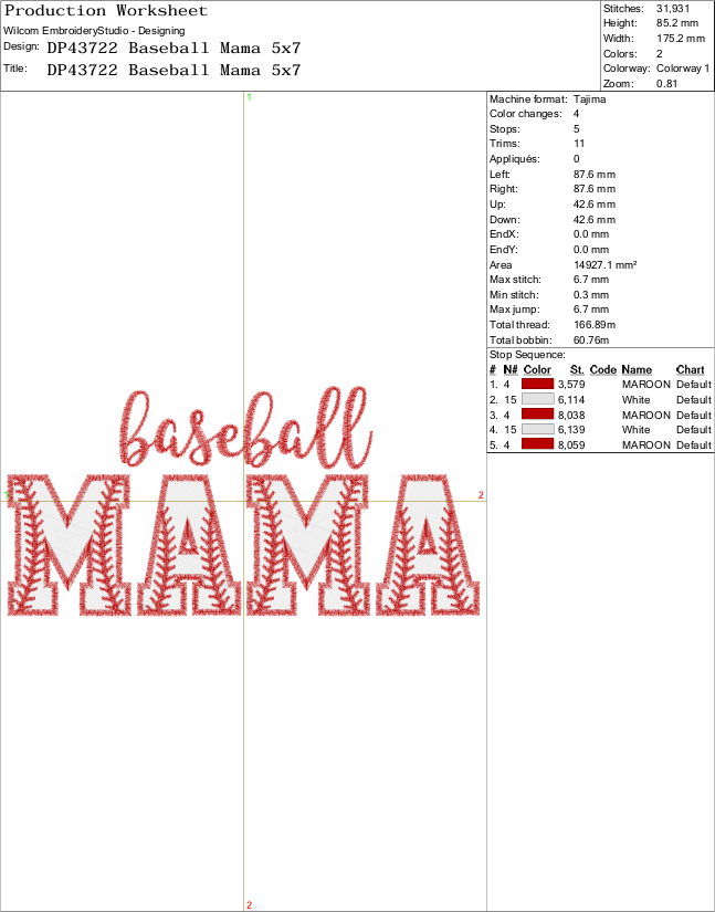 File Formats: DST, PES, JEF, HUS, PDF (Production Sheet).