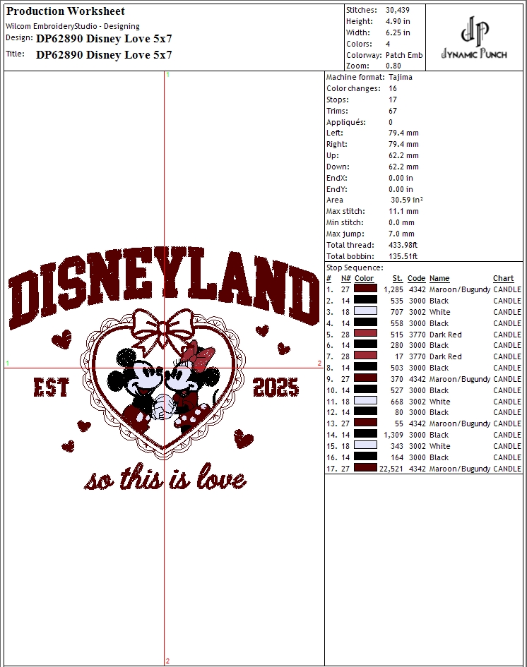 File Formats: DST, PES, JEF, HUS, PDF (Production Sheet).