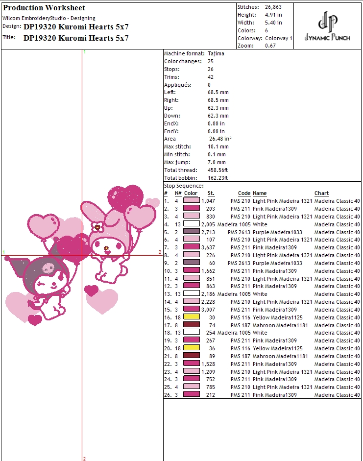 File Formats: DST, PES, JEF, HUS, PDF (Production Sheet).