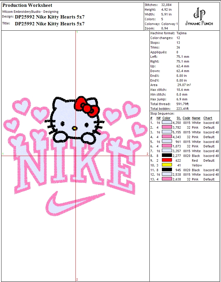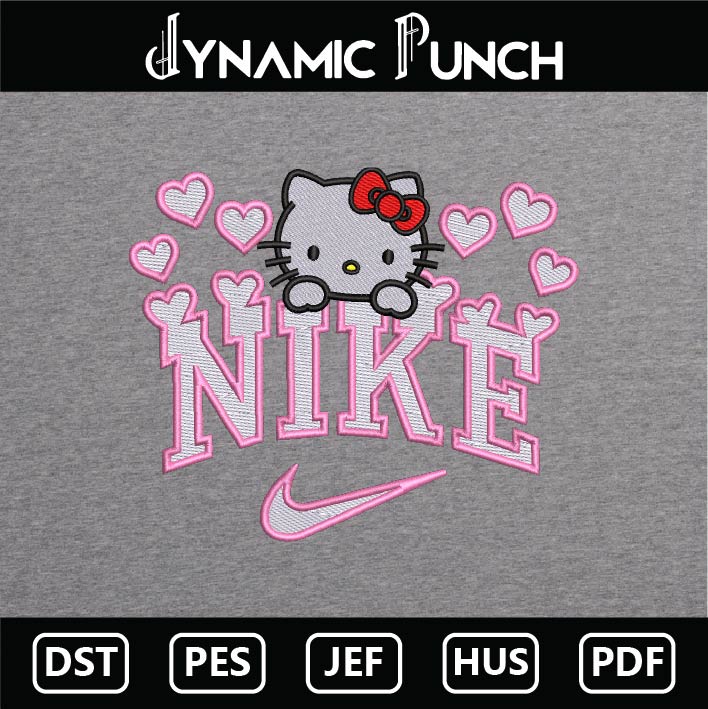 Nike Kitty Hearts Embroidery Design.