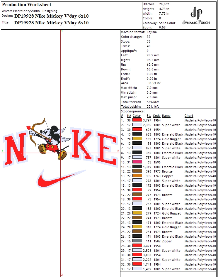 File Formats: DST, PES, JEF, HUS, PDF (Production Sheet).