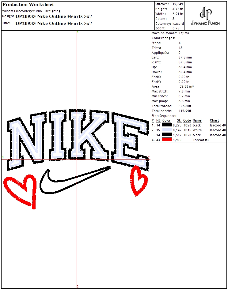 Nike Outline Hearts Embroidery Design.
