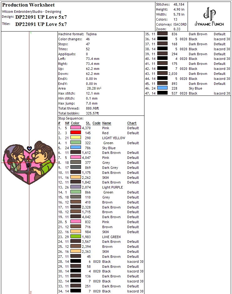 File Formats: DST, PES, JEF, HUS, PDF (Production Sheet).